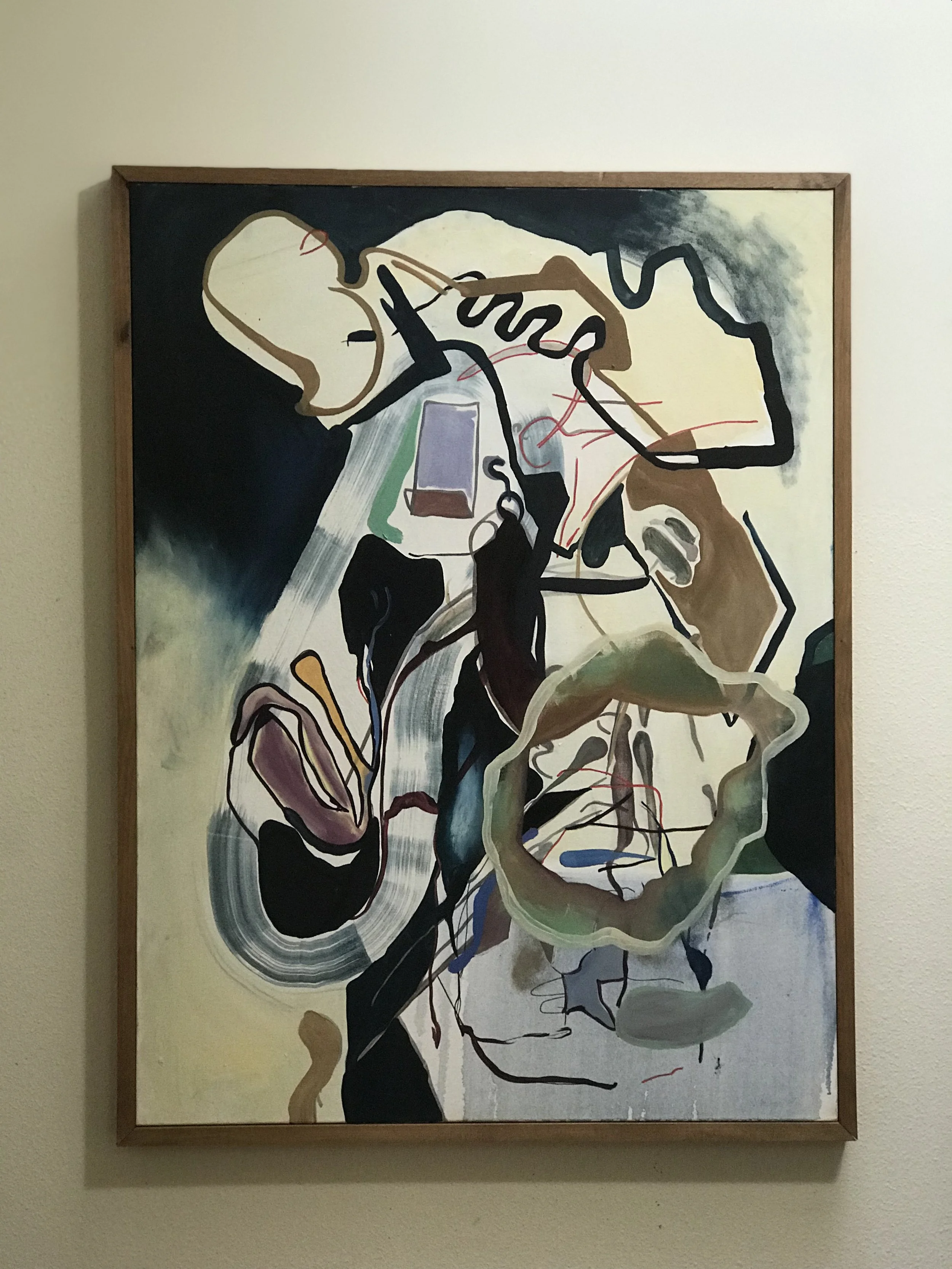 Drawing influences from surrealist works, Rococco color schemes, and abstract expressionism, the artist relies on what she describes as “radical movements” in her current environment as the inspiration for her work. Cordray describes the mindset, primarily wrestling with “falsehoods” and mental projections, that spurs her art, saying, “I often create false situations in my mind; create feelings that aren’t real or necessary. You know, making fake scenarios in my head. I’m very aware that how I assess future events differs from others, and this most often leads to negative outcomes. I recreate those experiences on canvas by playing with shapes and how they react and interact in synthesized, perceived, or non-existent space. I want the viewer to be patient and see what develops before they jump to fill in the blanks. Catch yourself before assuming.”