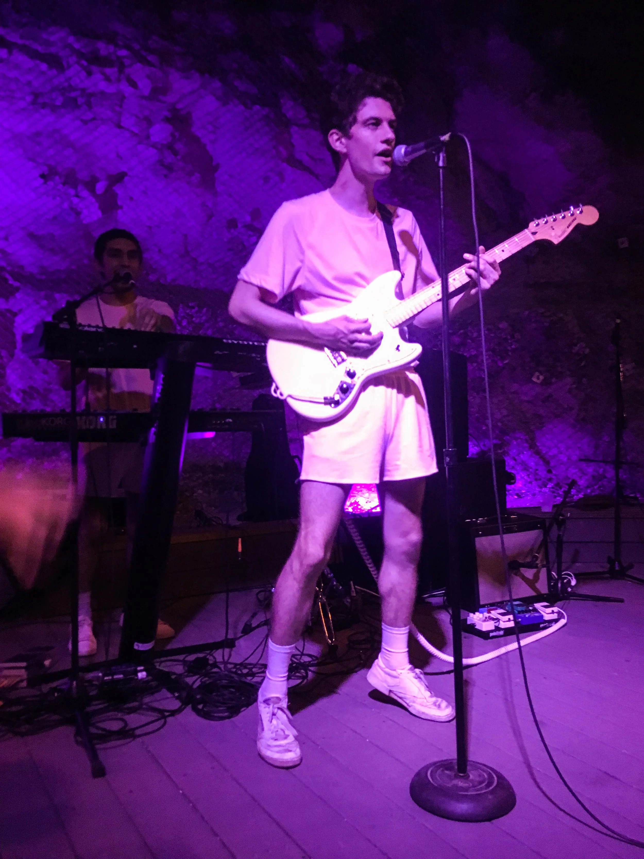At any given point, there were no less than 7 Superstars on stage. They were all dressed in identical high-rise plush pink sweat-shorts, with matching tucked-in oversized t-shirt, and similarly painted nails. Generally, only three of the members were making the music. One on keys, doubling as the percussion; another playing guitar, and the lead singer playing guitar on most songs as well. The band’s singer was flanked by four talented, synchronized backup dancers. Backup dancers is a misnomer. With the singer, they formed a front line and were essential to constructing the playful charm of TC Superstar’s live performance. Every single song in the set, they performed choreographed original dances too, with skill. Monkey see, monkey do. In the audience, we responded with less-skillful freeform movements of our own.